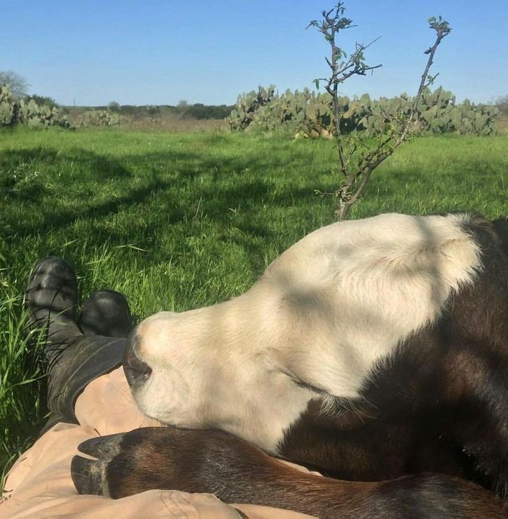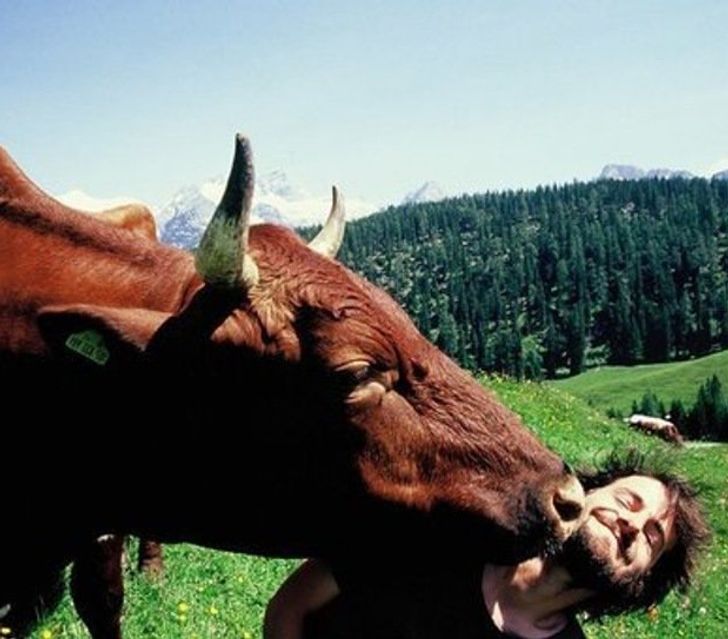 ▼藍天、白雲、青草地,還有溫柔的牛牛,這是童話中的場景嗎?