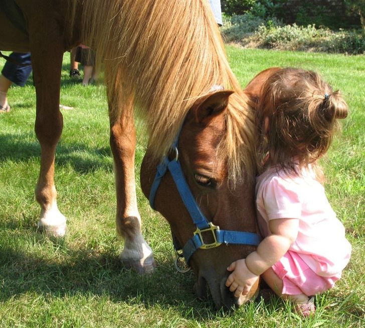 ▼「我女兒想抱抱這隻馬,牠低下頭超配合。」