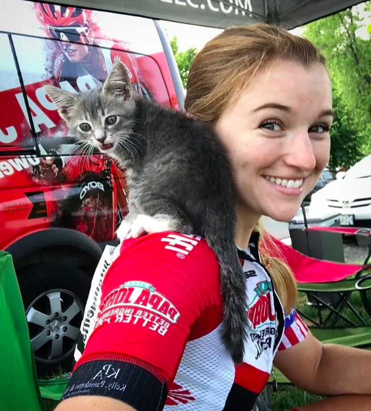 2021年08月09日緣分真是一種很奇妙的東西。美國密西根州女子Madison Kelly是一名自行車手,同時還是一個溫柔的貓奴。她家有一隻叫Kitsy的19歲橘貓,本來Madison不準備再養其他貓了,但她卻被一隻叫Puig的小貓賴上,不得不成為了Puig的鏟屎官。