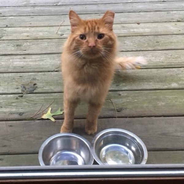 ▼Cinnabon偶爾會來吃東西,但看到Lex時還是很害怕,經常跟他對視一眼就逃跑。就這樣過了半年,Cinnabon才願意讓Lex隔著窗戶看牠吃飯。雖然牠還是不會跟Lex親近,但雙方的關係終於前進了一大步。