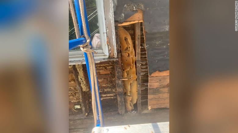 ▼Sara表示,這棟房子的狀況很糟糕。他們找來養蜂專家Allan Lattanzi檢查發現,大約45萬隻蜜蜂已經在這裡住了35年,後來花了1個星期的時間才陸續將蜜蜂移走。