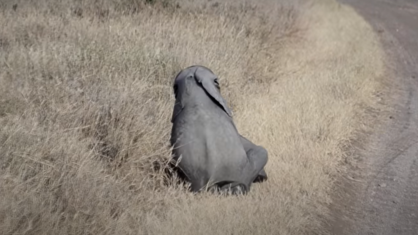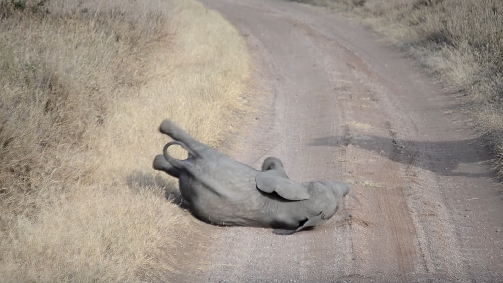 ▼剛開始這隻小象坐在路邊的草叢裡,不知道在想什麼。牠突然倒下開始翻來翻去,還一路翻到路上,兩條小短腿也不停晃過來晃過去,讓人聯想到那些逛超市時非要買玩具不可的小屁孩!