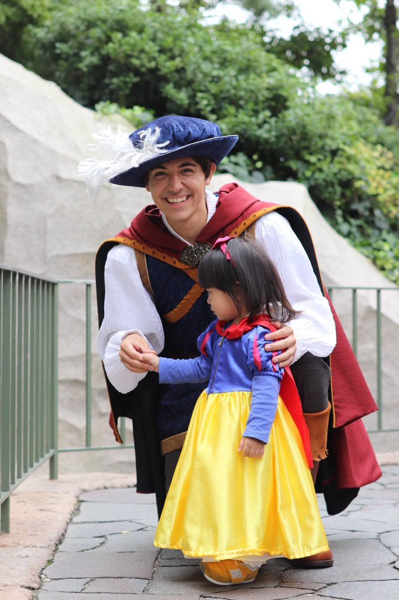 ▼這個迷你白雪公主實在太可愛,不僅吸引了很多遊客的目光,就連樂園內的王子都跑來求合照,還幫她簽名。