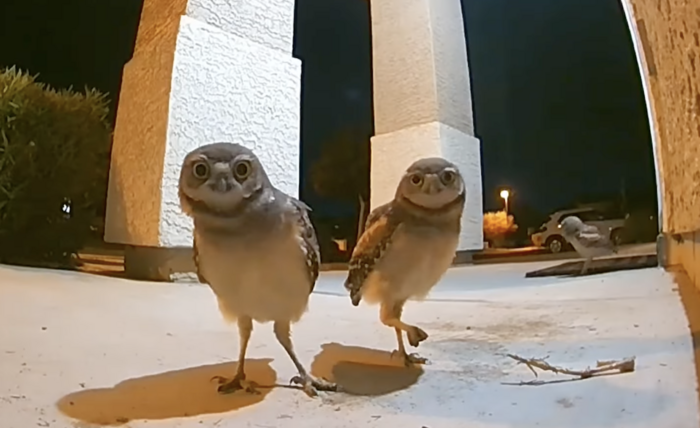 ▼Lyndsay搬到新家的第一晚,突然連續接到三次門口監視器偵測動靜的通知。她本以為有人登門拜訪,查看鏡頭畫面時,才發現有3隻小貓頭鷹站在家門口,正等著圓滾滾的眼睛看向鏡頭。貓頭鷹們好像在跟新搬來的鄰居問候,Lyndsay看到這一幕心都融化了。