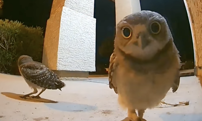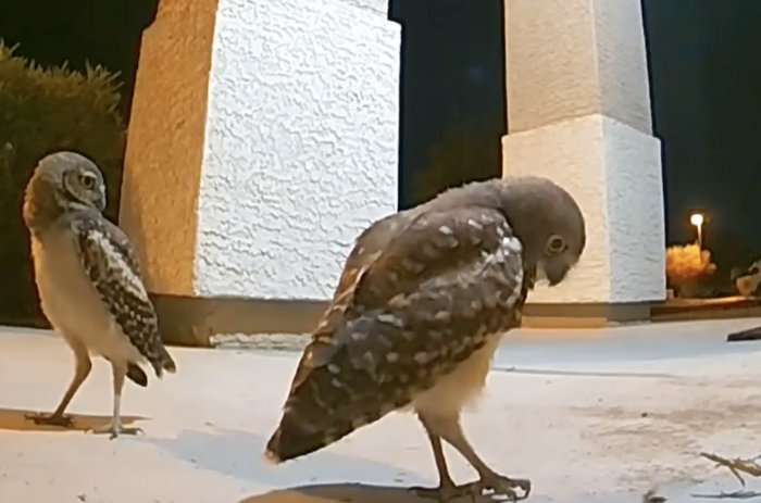 ▼貓頭鷹們面對鏡頭一點也不感到害羞。牠們在Lyndsay家門前捉蟲「聚餐」,順便透過監視器畫面跟新鄰居打個招呼,讓新鄰居感受一下這個社區居民的熱情。