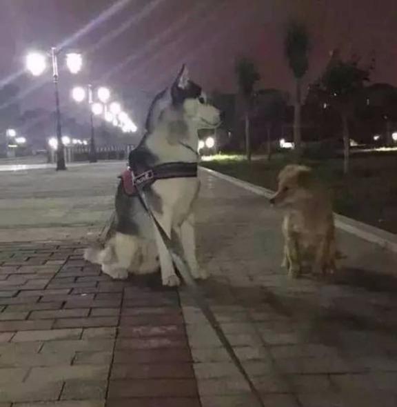 ▼哈士奇來到小浪浪旁邊,牠沒有將浪浪趕走,也沒有對牠吠叫,兩隻狗狗靠得很近,似乎在用自己的方式交流。原po還以為哈士奇要把浪浪趕走,沒想到浪浪很喜歡哈士奇,還跑到牠身後坐下,似乎要排隊跟著牠回家。