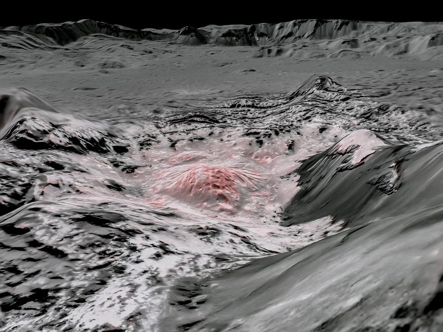 ▼早就有分析發現,穀神星上的隕石坑下可能存在鹽水。這次研究人員發現的物質證實了這一猜測。Sanctis表示:「現在我們可以說穀神星是一個海洋世界!」穀神星上的岩層應該是在過去200萬年裡形成的,海水可能是從內部滲出來的。