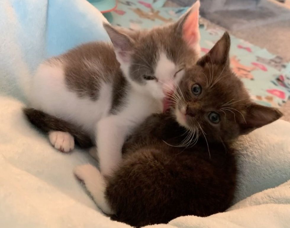 孤兒小黑喵獲救沒玩伴 遇到「灰白雙胞胎姊妹」抱緊不放開:以後就是一家人❤