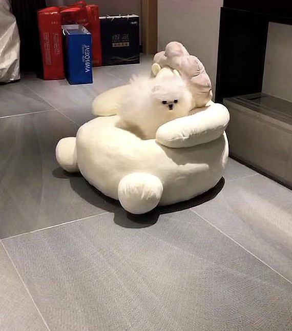 ▼主人對小博美非常好,經常給牠買玩具,還給牠準備了專屬的沙發。平時小博美可以坐在沙發上看電視、睡覺。主人工作很忙,不能24小時陪伴在牠身邊,但主人給狗狗準備了很多東西,讓牠自己待在家也不會無聊。