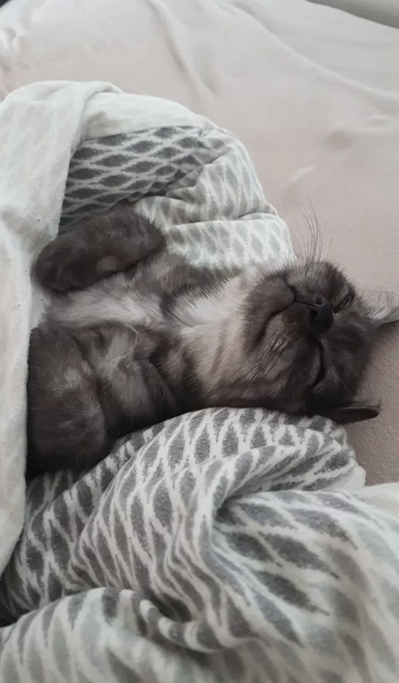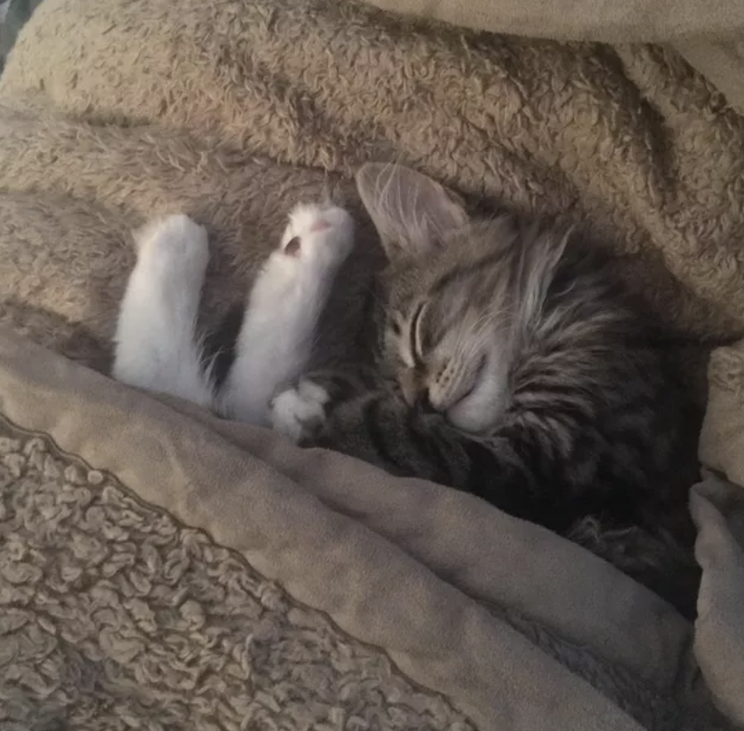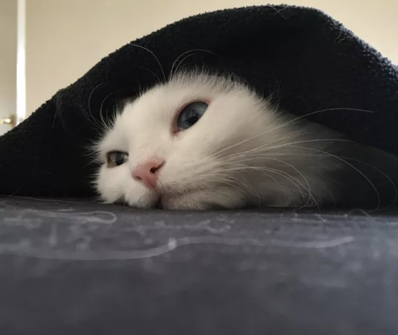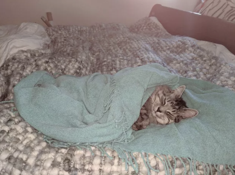 ▼「我們剛剛認識的時候,我老公並不愛貓。現在他每天早上上班前,都會給我家貓咪蓋上毯子。」