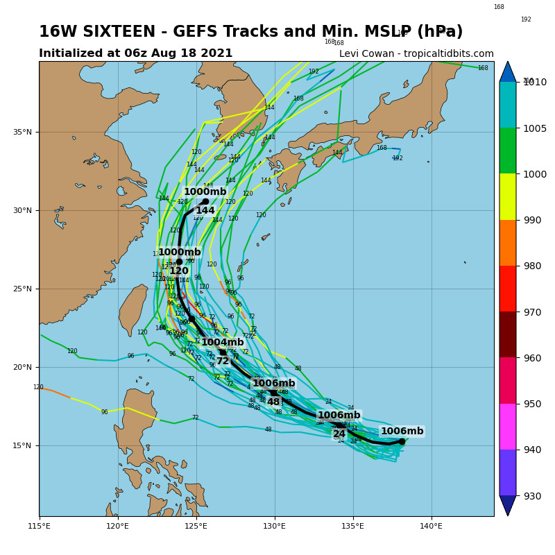 ▼至於關島西南方海面的低氣壓,距離台灣仍有2100公里左右的距離,預測向西北西移動,氣象局仍會持續觀察此低氣壓的動向。災害預報士賈新興分析,目前在菲律賓東方外海殘存的熱帶低壓雲系TD16,整個環境不有利。歐洲模式預測其發展有限,美系預測稍微有機會存活。目前來看,TD16將以熱帶低壓型態為主,生存時間相對有限,強度成颱趨勢不超過15%,勉強能夠維持熱帶低壓的條件就很不容易。