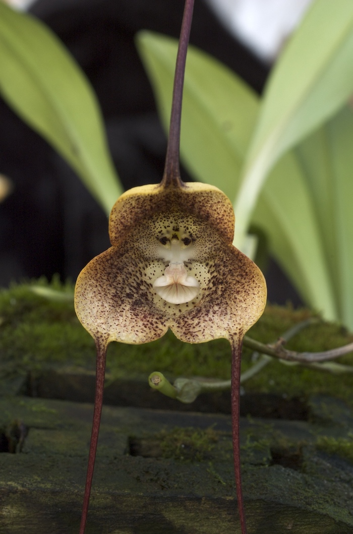 ▼20世紀70年代末,植物學家Carlyle Luer在厄瓜多的熱帶雨林中發現了這種蘭花。它的花朵像猴子的臉,花蕊看起來像猴子的眼睛、嘴巴,再加上毛狀突起,這才有了猴子蘭花這個名字。