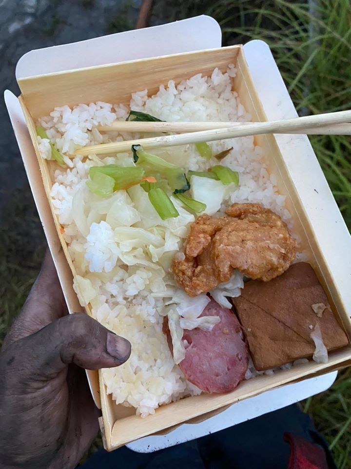 ▼因為連續面對高溫炙熱大火數小時,再美味的便當在面前,消防隊員也只能是苦無食慾下腹。臉書粉專「新北消防發爾麵」寫道,「我也想吃飯前先洗手,可是火在我面前燒得又大又廣」,只見照片中的左下方消防隊員拿便當的手被濃煙燻得焦黑,都沒來得及洗手,加上天氣悶熱和數百度的高溫火勢,焦黑的手拿著的便當又食不下嚥,令網友十分不捨。
