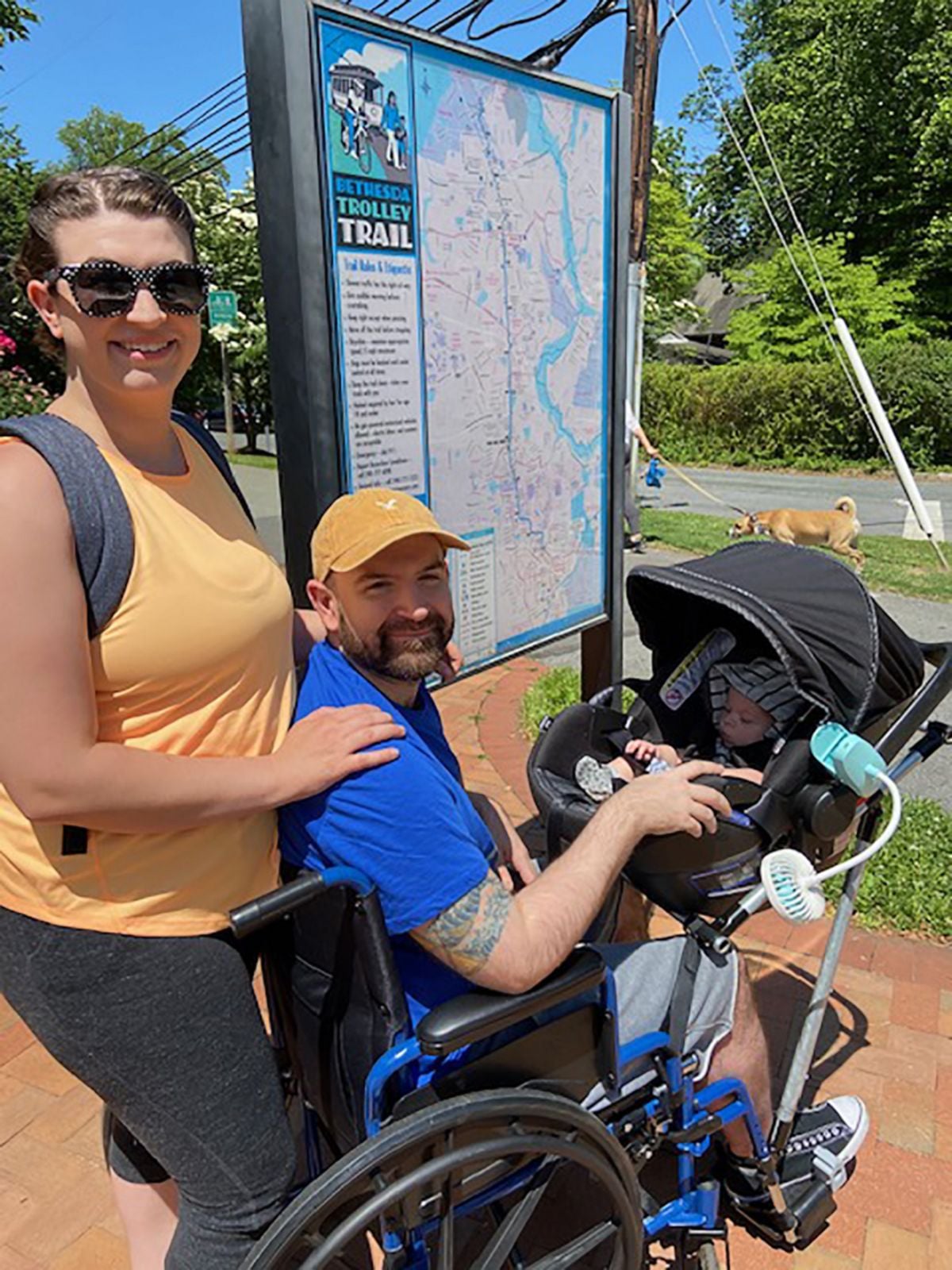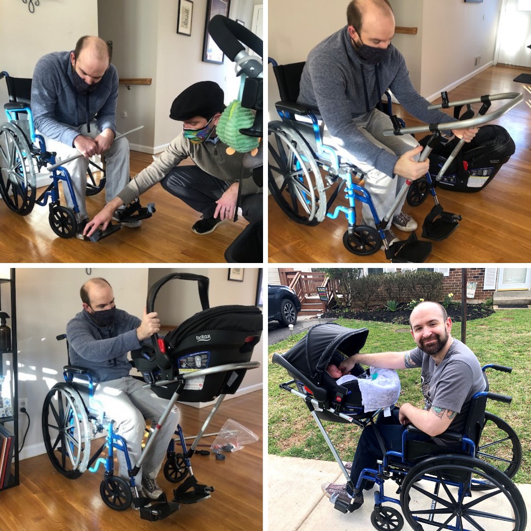 ▼3年後Chelsie懷孕,這個家庭很快就要迎來新成員,但Jeremy擔心自己行動不便,在育兒過程中遇到困難。學校中的另一位老師Matt Zigler得知這件事後,決定伸出援手。他的學生Jacob Zlotnitsky跟同伴們將輪椅和嬰兒車改造了一下,然後將兩者組裝起來,變成了「輪椅嬰兒車」。