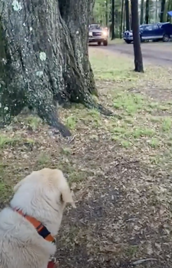 人家還想玩!阿汪跨湖「偷跑露營區」找遊客塞奶 爸開車尋回無奈:該回家了啦