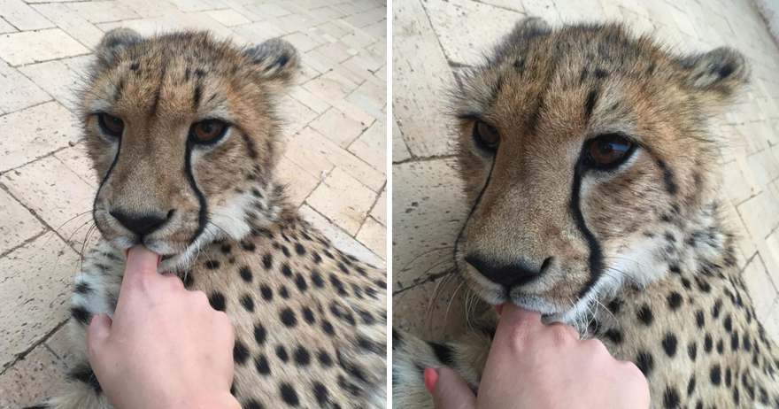 ▼Lisa跟這裡的大貓都很熟悉,經常在IG上分享大貓和其他動物的日常。那一天她跟一隻年輕獵豹玩耍時,獵豹竟含著她的手指吸吮,就像嬰兒吸著奶嘴一般。小獵豹一邊吸手指一邊發出呼嚕聲,臉上的表情非常平靜,好像在說:「人家還是寶寶啦。」