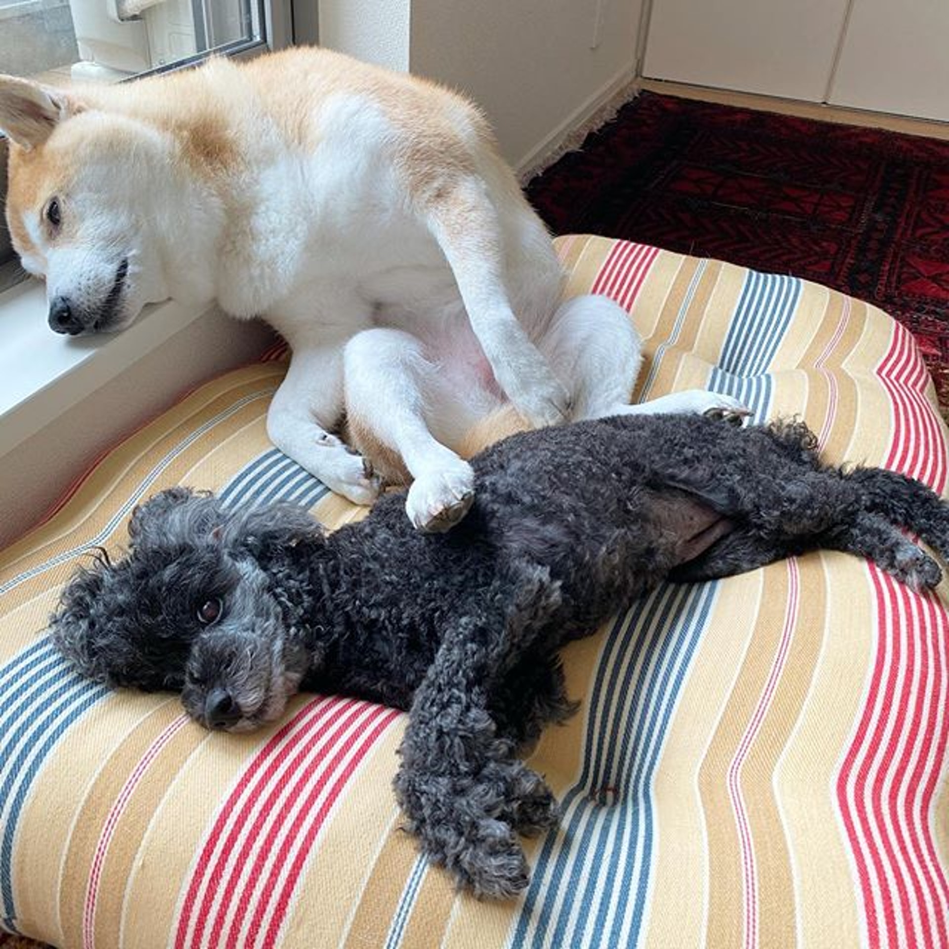 ▼Halo是一隻玩具貴婦狗,今年已經9歲了。牠跟Uni相處時的樣子很溫馨,牠們不愧是多年的好朋友。