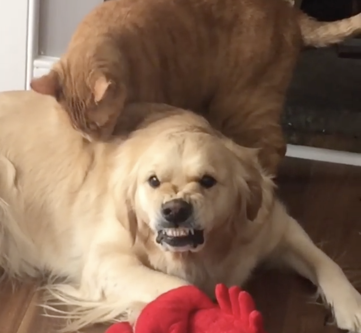 2021年08月27日狗狗和人類一樣都喜歡被順毛摸~美國紐澤西的這隻黃金獵犬Daisy平時脾氣很溫和又善解人意,但是偶爾還是有會觸動牠發怒的地雷,例如當牠被貓咪同伴舔毛毛的時候,牠會露出不滿的表情,雖然會看到馬麻的面子上盡量忍耐,但從牠鼻子上的皺摺還是可以窺知一二。