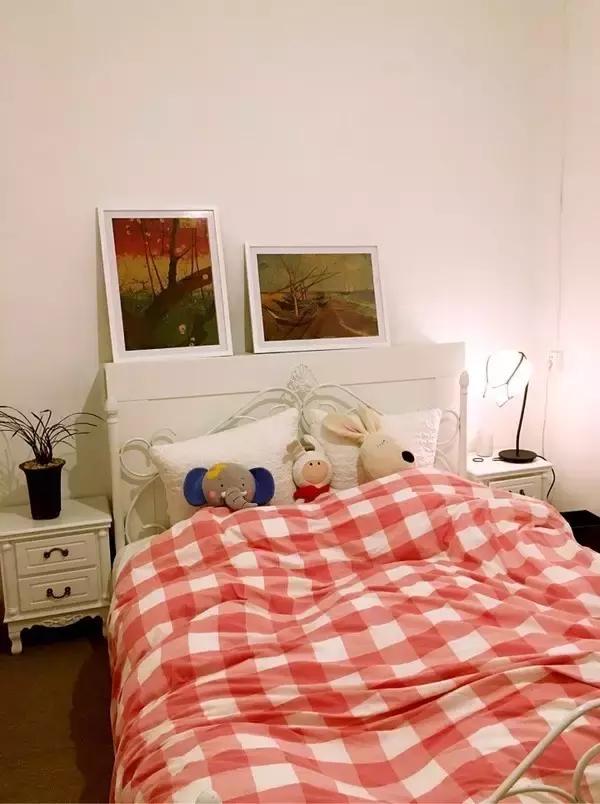 ▼搭配床頭櫃、床頭燈、布藝小寵物,還有兩幅清雅的畫,一下子就有了家的感覺。