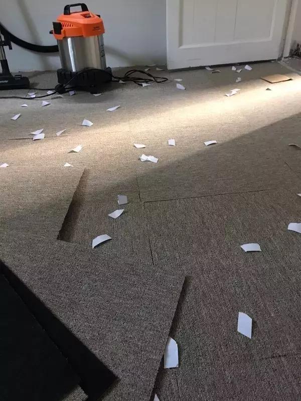 ▼地面太髒,實在不好清潔,她買來辦公室用的那種地毯,鋪滿整個房間,花費竟然也不高。