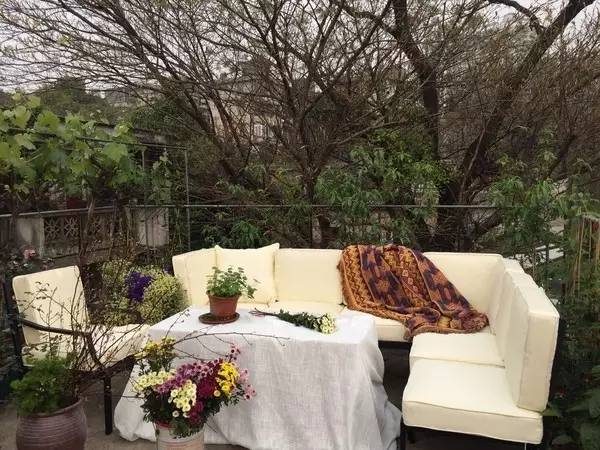 ▼天台也特別佈置過,她買來戶外專用的沙發,還擺了一些綠色植物。