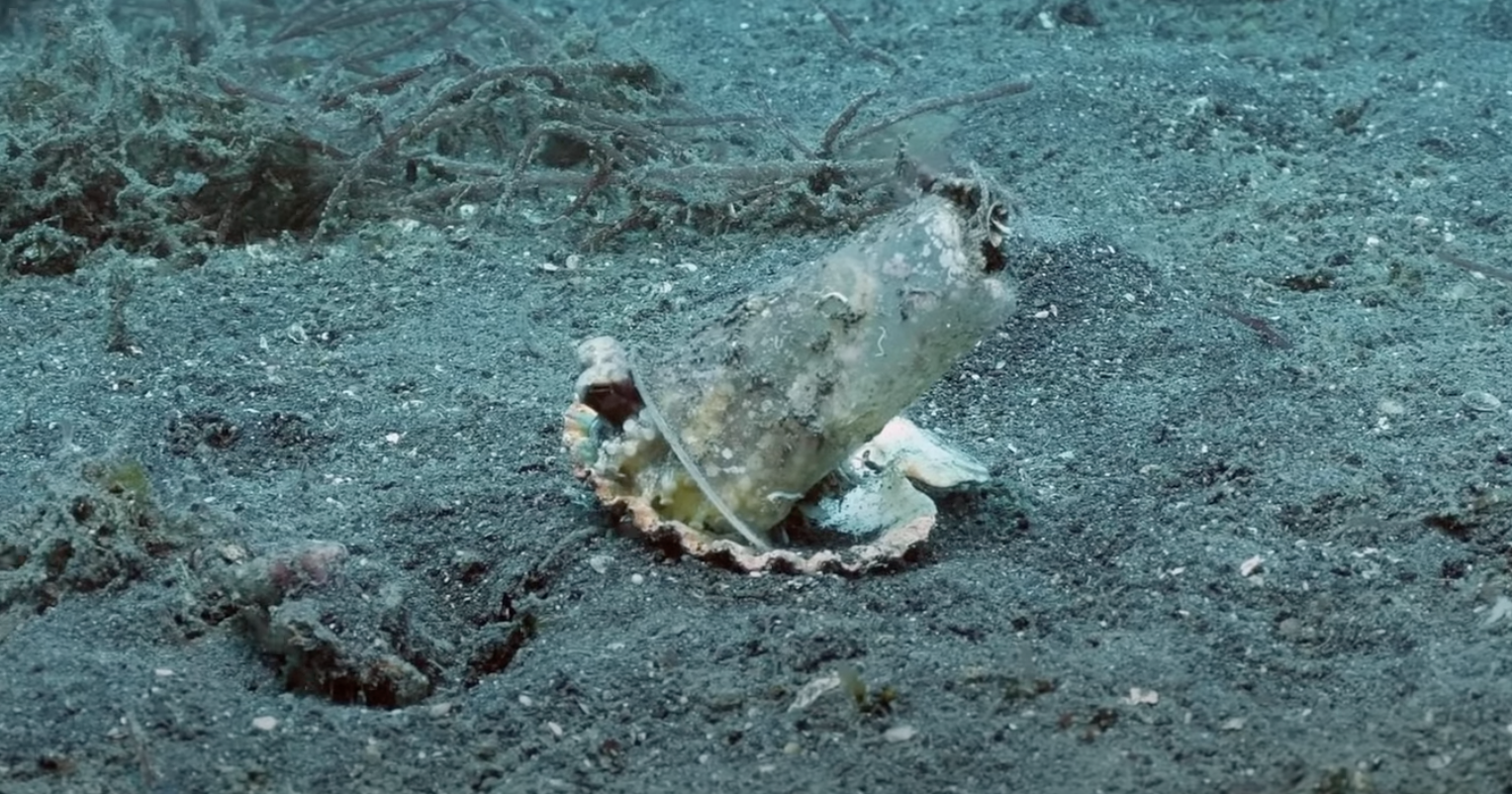▼Pall表示:「我看過很多章魚把垃圾當家。牠們很聰明,知道要用環境保護自己,不幸的是現在海洋垃圾已經是牠們生活環境的一部分了,但是這種柔軟的生物並不知道塑膠杯完全無法提供任何保護,把它當家基本上是給自己判了死刑。」