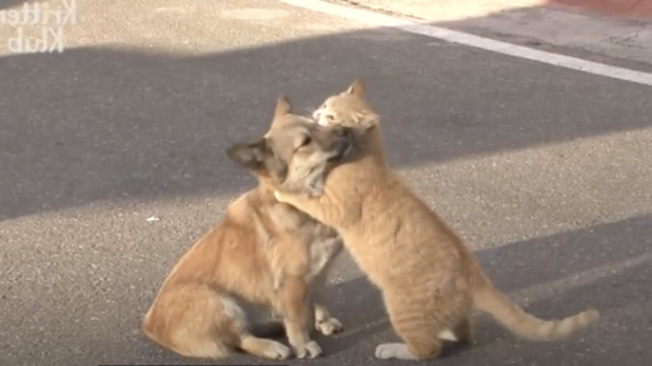 這2隻毛孩的友誼好感人~日前韓國動物救援組織「Kritter Klub」分享了一隻小黃狗和一隻橘貓的故事。小黃狗整天在一處公寓前徘徊,好像在等人,但牠等的人始終沒有出現。後來牠的身邊多了一隻浪浪小橘貓,貓咪每天陪在小黃狗身邊,牠們的互動非常感人。