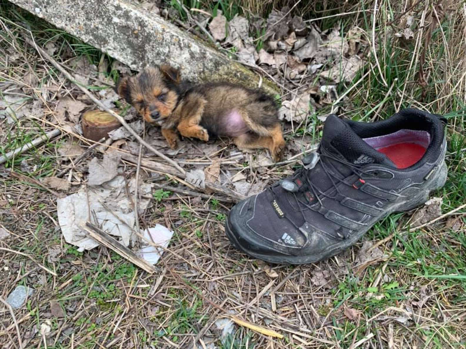 一隻舊鞋就是牠的家! 好心人發現飢餓小浪汪果斷「包辦狗生」