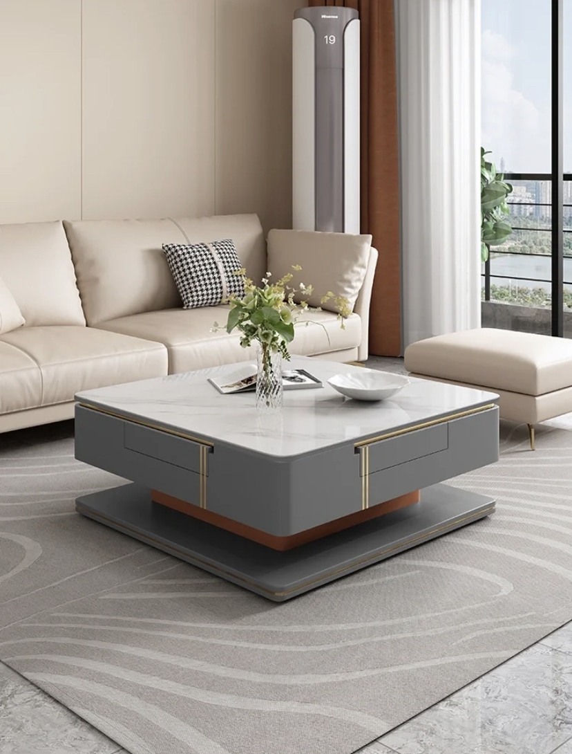 ▼第一眼看到這張桌子,還以為是普通的茶几,沒想到它能變成麻將桌。這款「大理石電動麻將桌」平時是茶几的型態,有質感灰和氣質米白色,能夠適應不同的裝潢風格。桌子的最上方是大理石桌墊,擺在家中頗具質感。