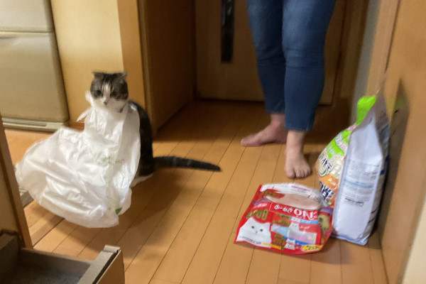 奴才隨手放塑膠袋! 回頭見貓貓「自己折手手打包」:歡迎外帶♡