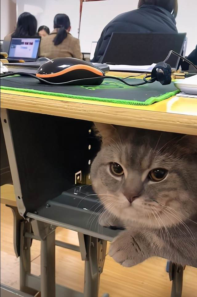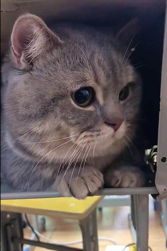 不想跟主人分開!黏人貓緊跟去教室 躲抽屜偷偷探頭:都聽不懂耶~